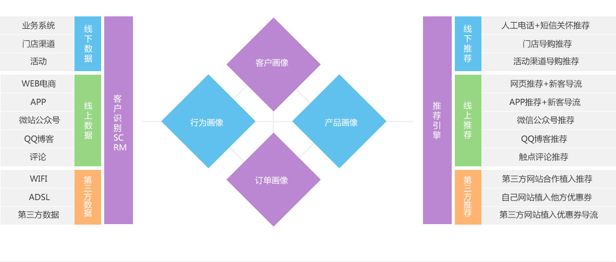 - 全渠道跨界跨屏倒流,获取线索、累计数据、丰富画像并做实时推荐,打造跨界全网的精准营销能力。