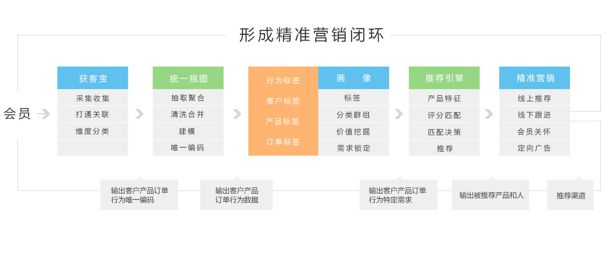 通过研究消费者的行为特性,以标签应用的形式帮助企业了解其目标消费群的偏好,并通过合适的营销媒体及营销方案与目标群体进行有针对性的沟通互动,赢得高响应率、转化率和成交率。
